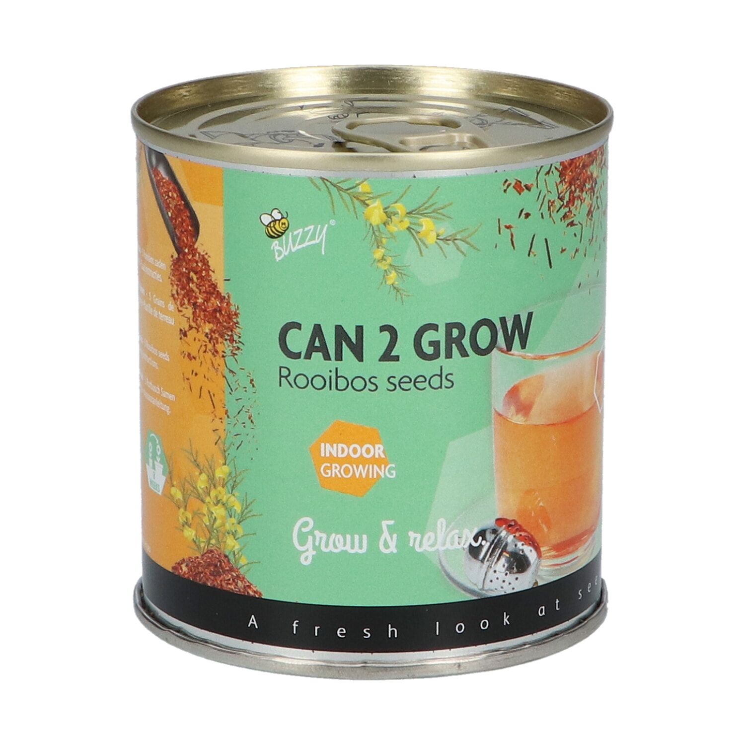 Rooibos is het gehele jaar binnen op te kweken bij ca. 25°C in het blikje. De zaden eerst lichtjes opschuren met schuurpapier en vervolgens 24 uur laten weken in handwarm water. Leg het Cocopress® tablet in een schaaltje en voeg 75 ml lauw water toe. Na ongeveer 5 minuten is de cocos verzadigd. Zaai de zaden in het blikje en bedek de zaden met een dun laagje grond. Laat de grond niet uitdrogen. Als de plantjes de eerste bladeren ontwikkelen kunnen ze worden overgeplaatst in een pot. Rooibos bevat minder tannine in vergelijking met gewone thee soorten, waardoor rooibosthee geschikt is om te drinken voor het slapen gaan.Tropische planten vergen meer aandacht dan andere planten. Volg daarom zo nauwkeurig mogelijk de ingesloten zaai instructie voor een optimaal resultaat.