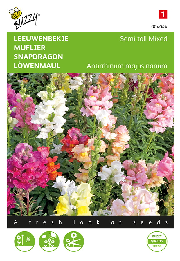 Mooie perkplant, bloeit zeer lang in prachtige verschillende kleuren. Dit is het beste eenjarige mengsel voor de snij. Hoogte: 50 cm.Zaaien: Half maart tot half april onder glas of half april tot eind mei buiten op zaaibed; 5-6 weken na de uitzaai uitplanten.Bloeien: juni- september