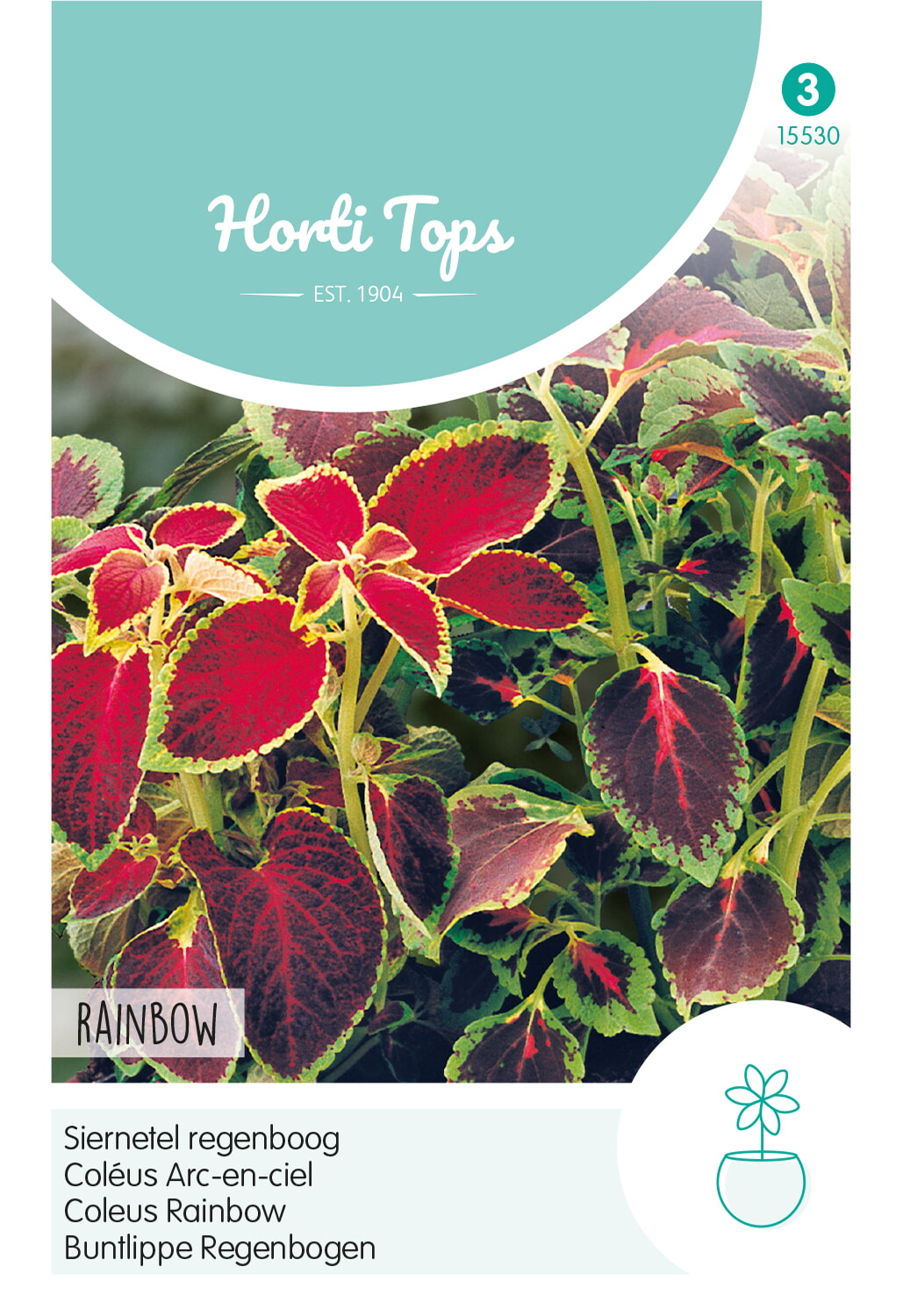 Decoratieve siernetel, vooral bekend als kamerplant, maar in de zomer zeer geschikt voor het terras of op balkon. Zaaien:Kamerplant Coleus vanaf maart tot en met juli op te kweken, bij ca.20 C in zaaibakje of bloempot. Uitplanten in grotere potten wanneer de plantjes circa 5-8 cm groot zijn. Het zaad niet bedekken, licht aandrukken en vochtig houden. Bij te snelle groei de toppen eruit knippen.